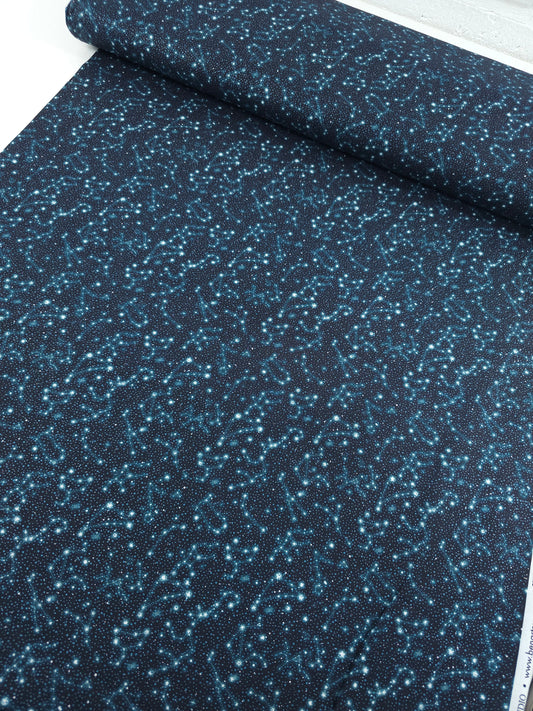 Petrol Navy Horoscope Skies 100% Cotton - Benartex
