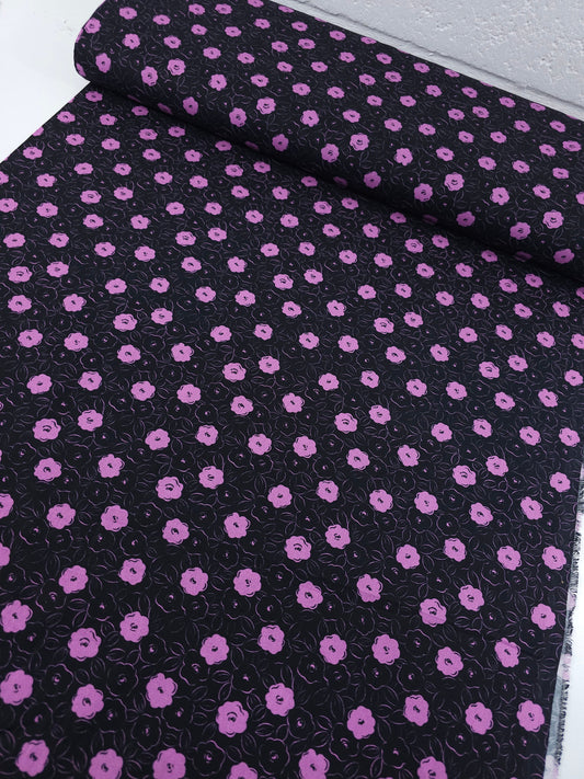 Purple/Black Puff Floral 100% Cotton