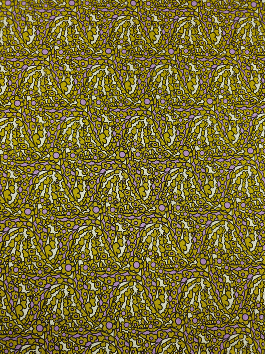 Mustard/Lilac Quirky Floral 100% Cotton 55"