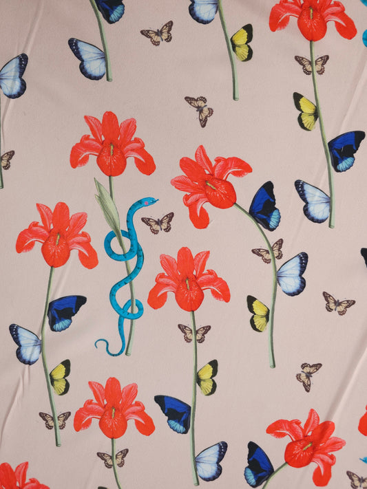 Light Blush Butterfly Floral Poly Crepe