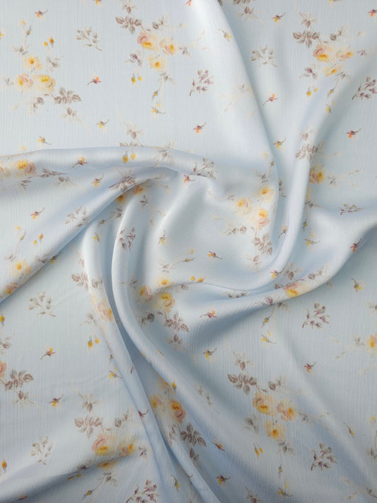 Pale Blue Vintage Floral Crinkle Poly Satin