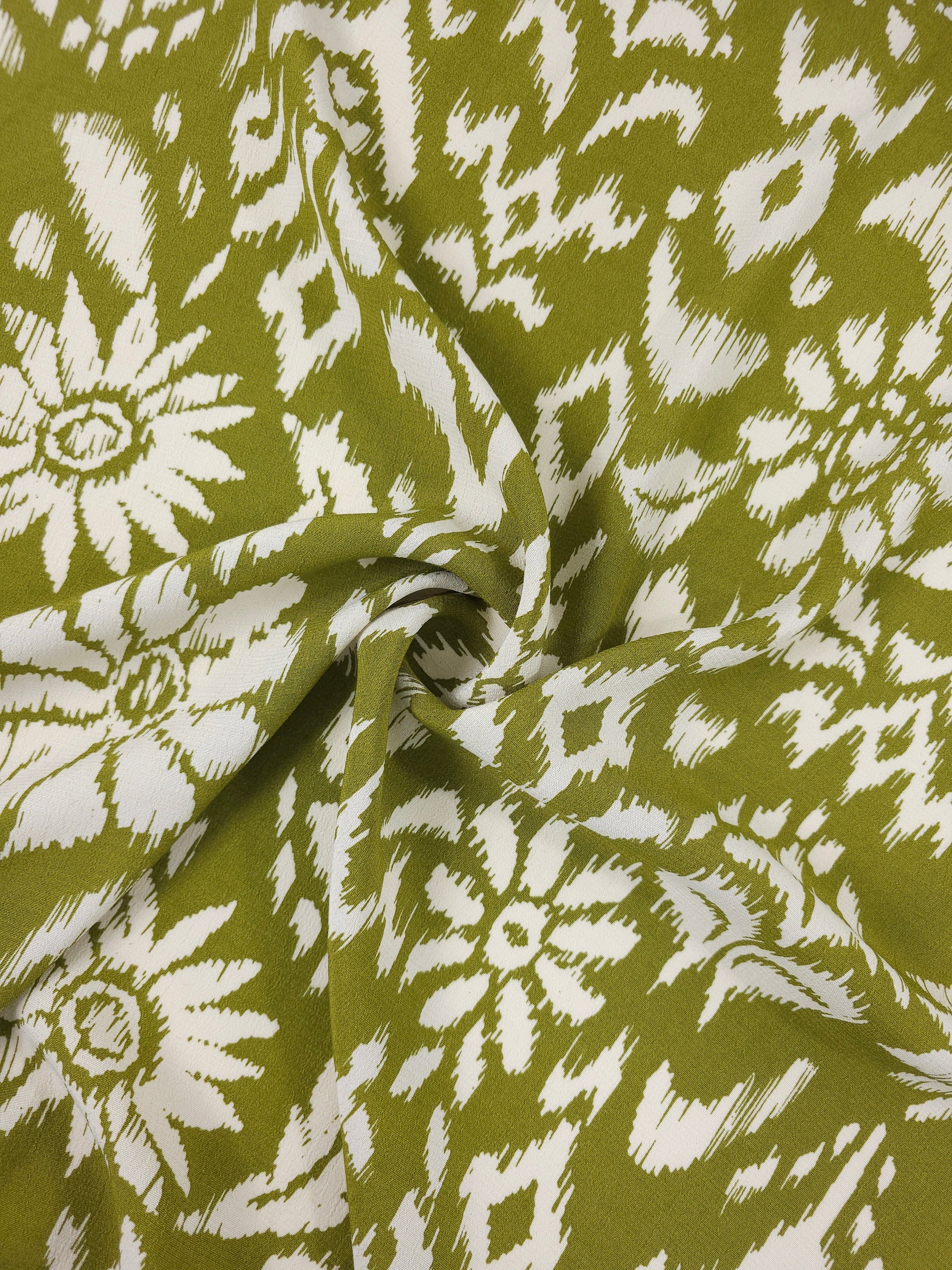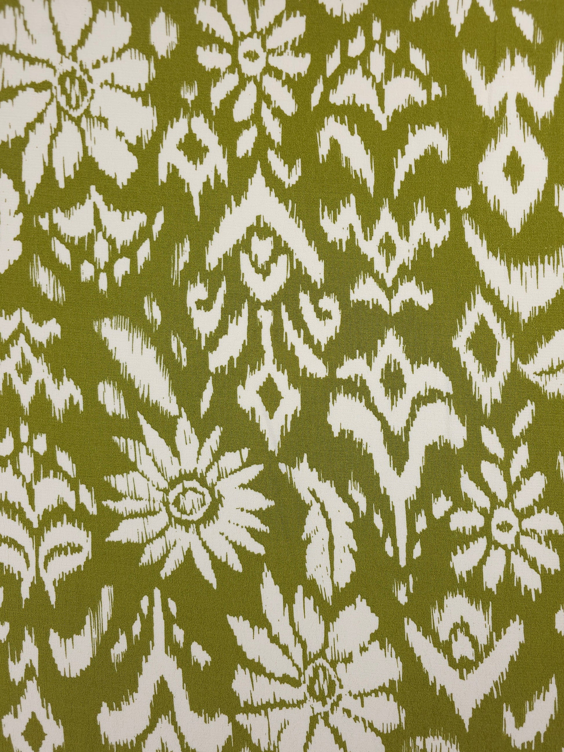 Deep Lime Damask Floral Viscose Crepe