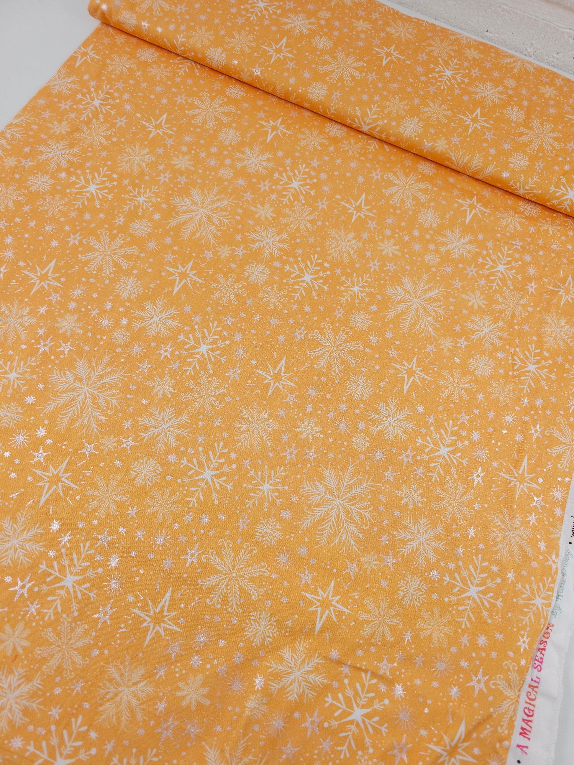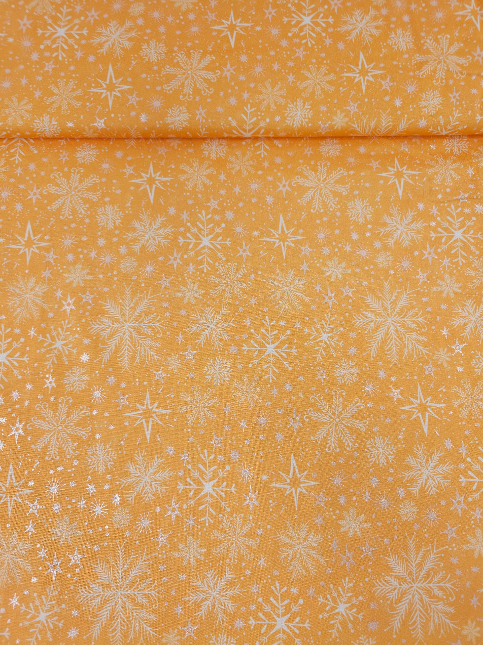 Orange/Silver Magical Snowflakes 100% Cotton - Benartex