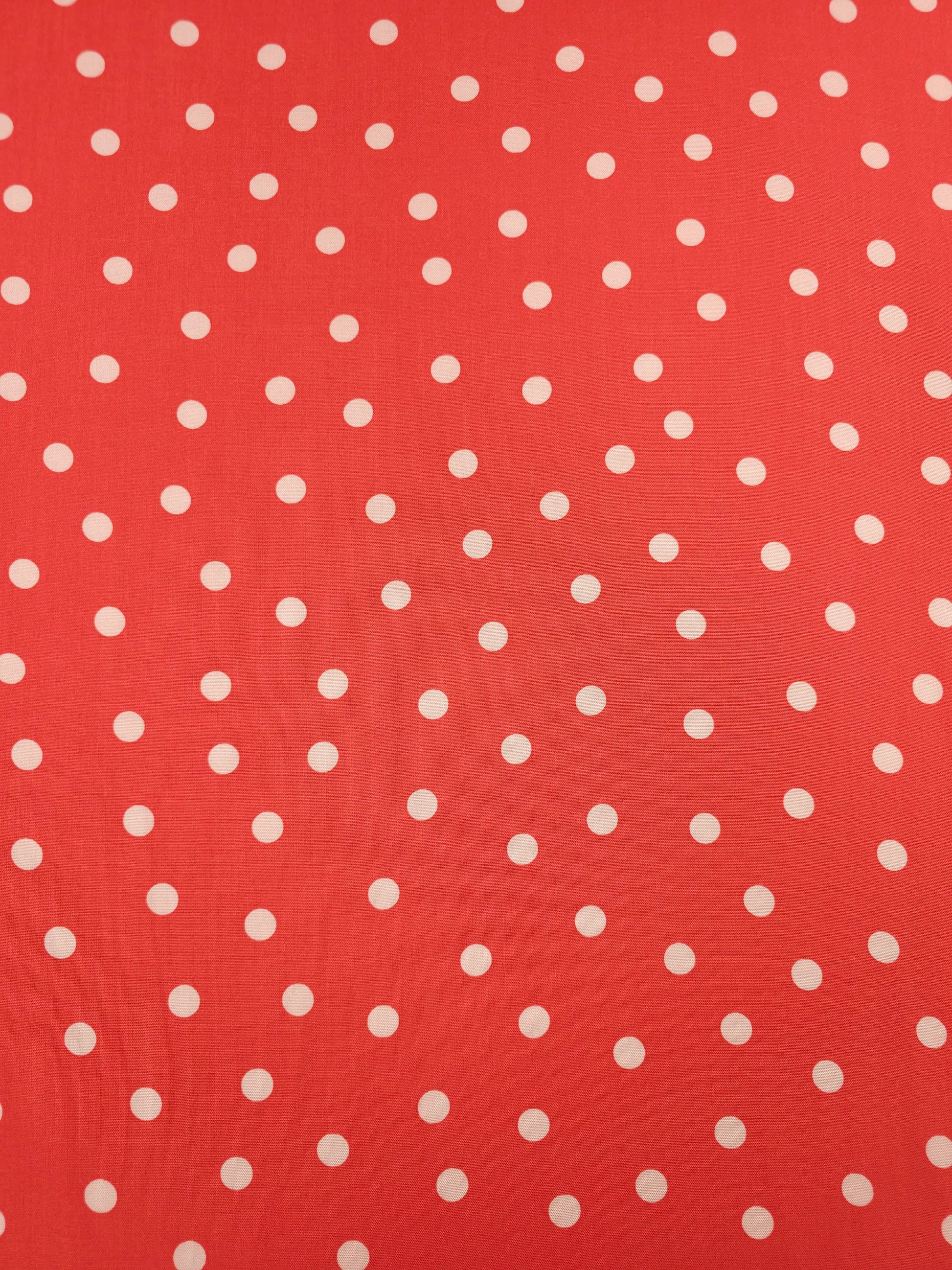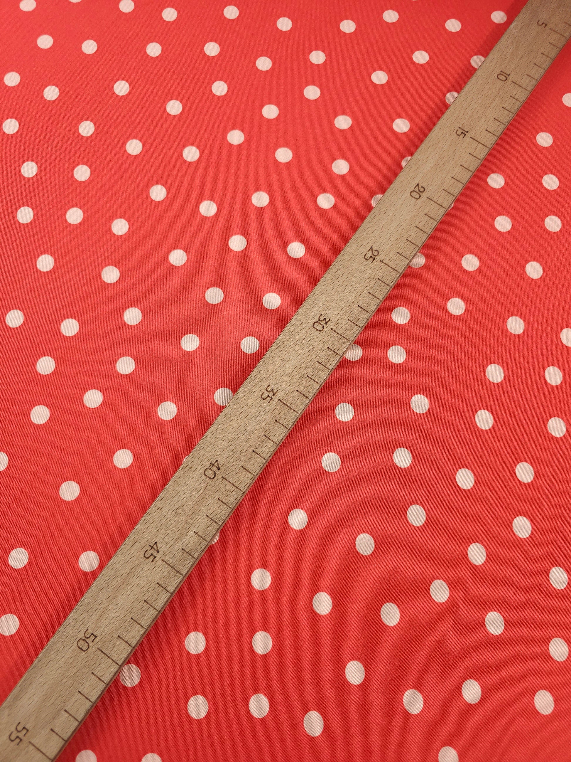 Orangey Coral/Cream Polka Dot Viscose Challis