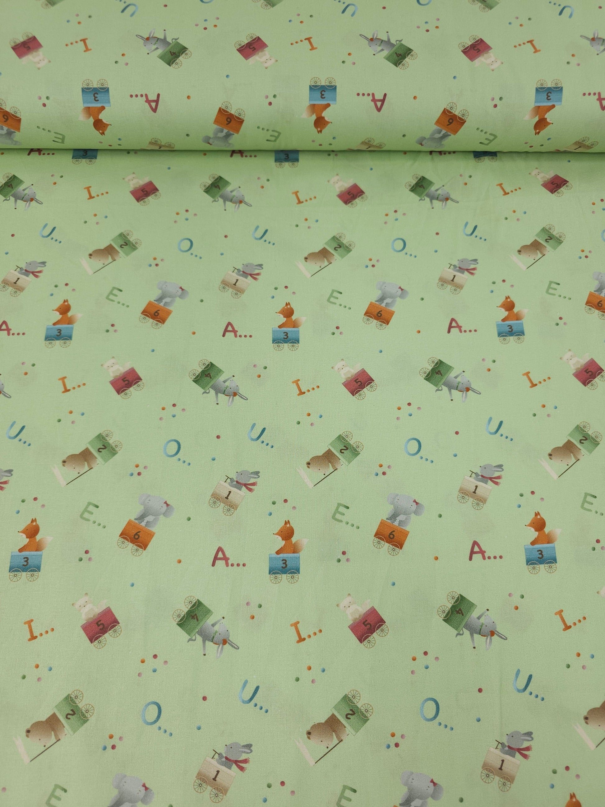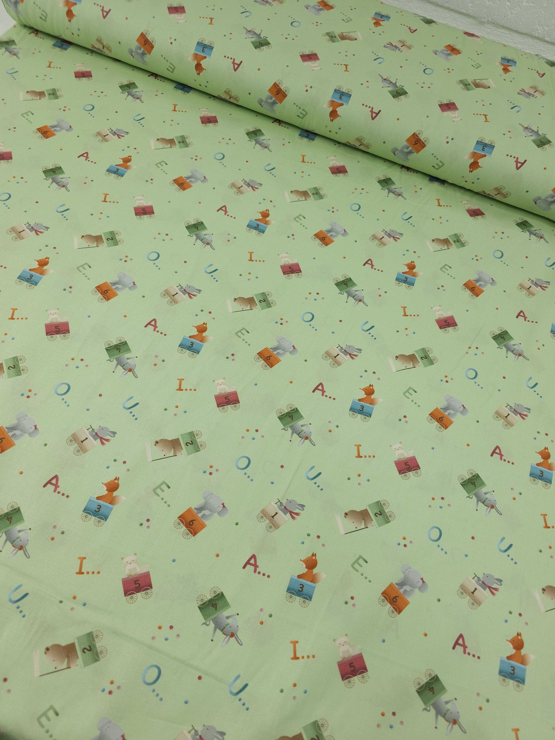Pastel Green Novelty Alphabet 100% Cotton