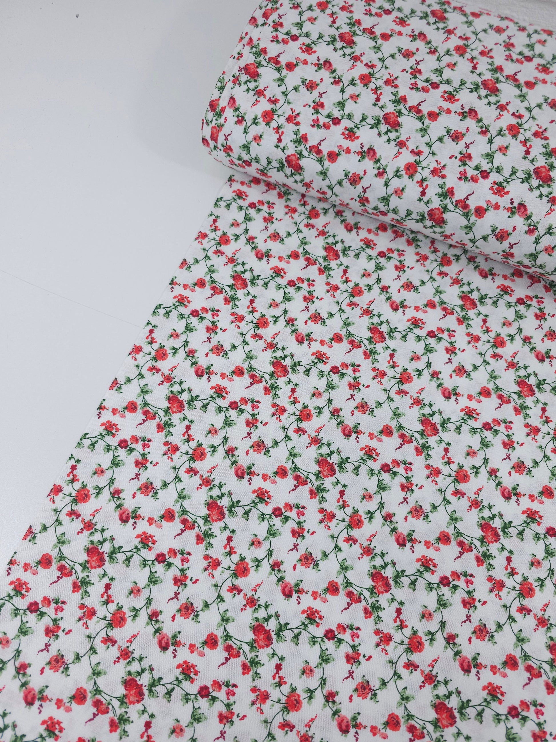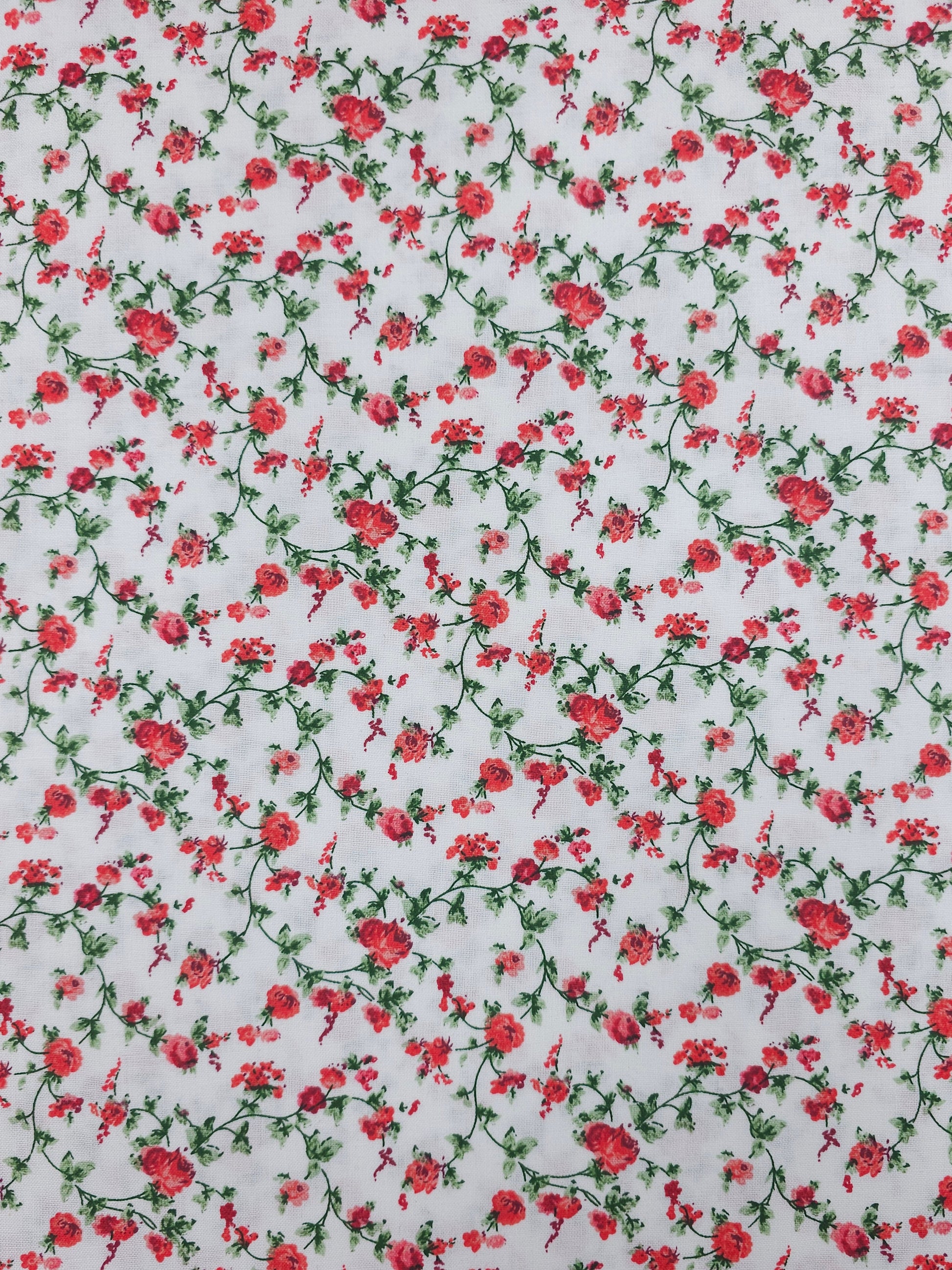 Red Ditsy Floral Twine 100% Cotton